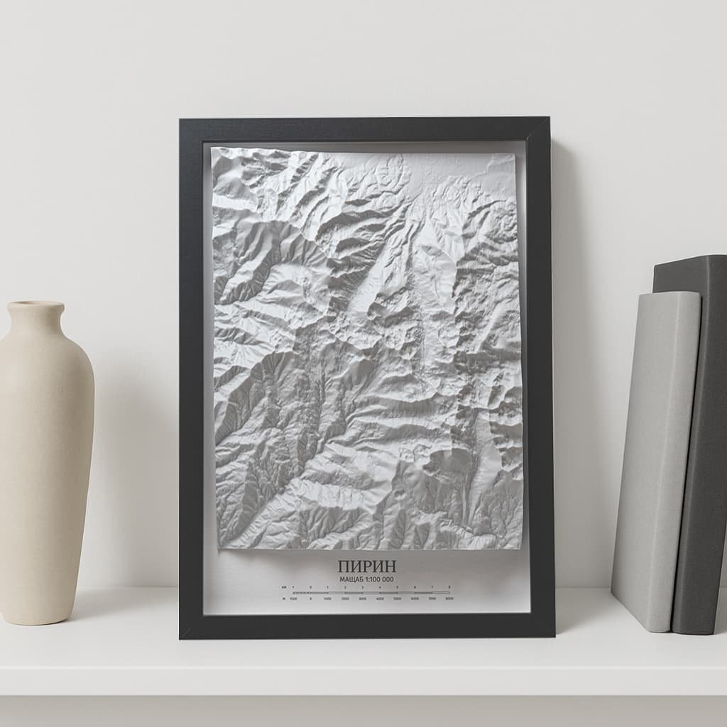 Превърнете любимата си планина във впечатляващ акцент за дома или офиса с 3D релеф на Пирин (21×30 см). Това е детайлно изработен физически модел на планинския масив в мащаб 1:100 000, който пресъздава формите, долините и върховете на Пирин с изключителна дълбочина и реализъм.